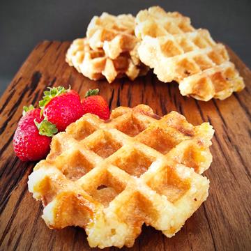 O único waffle do Brasil com receita original e as famosas pérolas de açúcar com o sutil cheiro de baunilha.